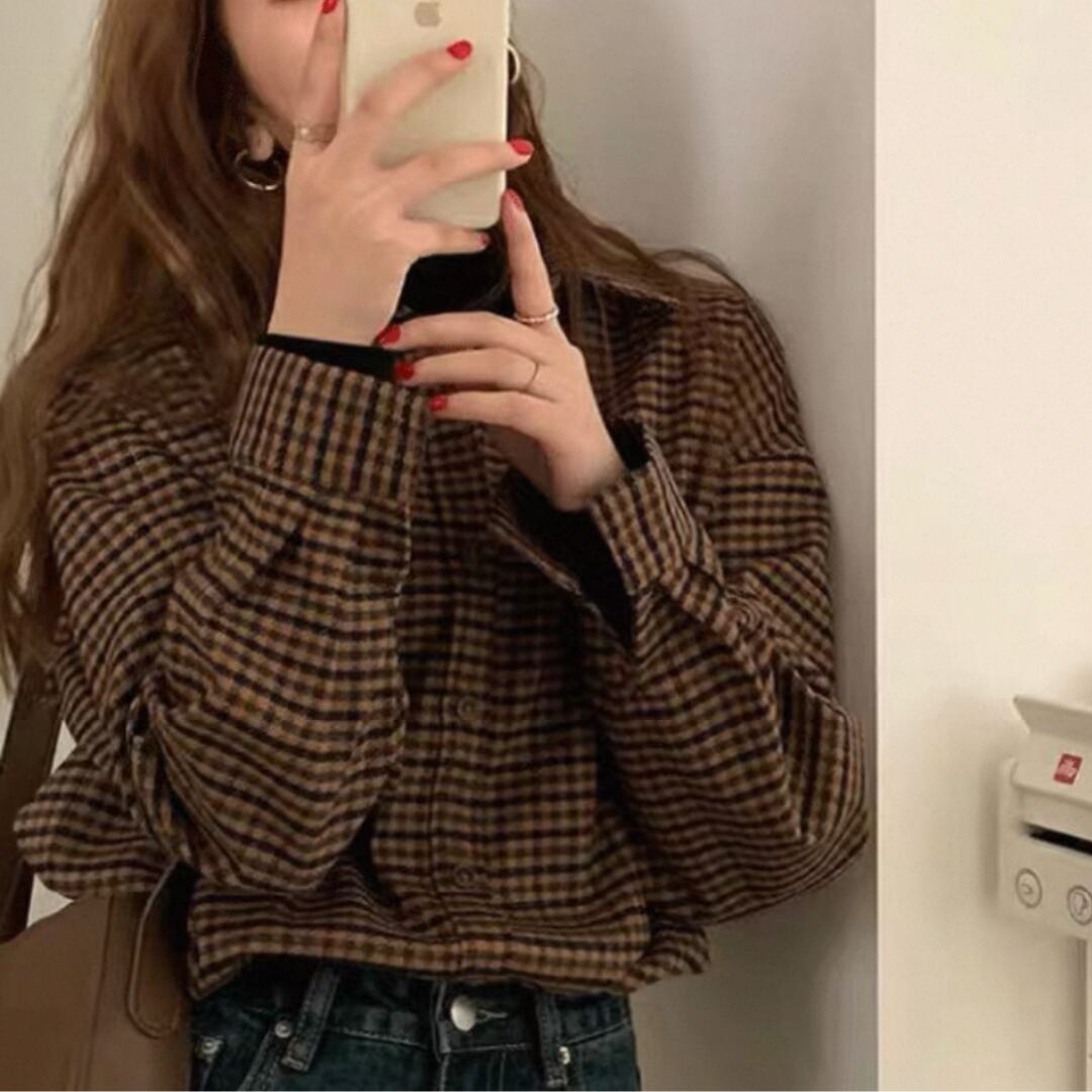 千鳥格子柄ブラウンシャツ[N00045]